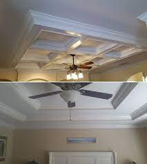 Tray Ceiling Crown Molding, Beautiful Diy Vaulted Ceiling Makeover Abbotts At Home, This is two panels with angled corners.. Tray ceiling with coffered design. Clean the ceiling, removing dust, debris, or any current decoration that would interfere with painting. I used the already level crown molding as my reference point here. As everyone's favorite, the large aventura molding can create a tray ceiling effect with its large projection of over 6. Stain the crown molding and let it dry.